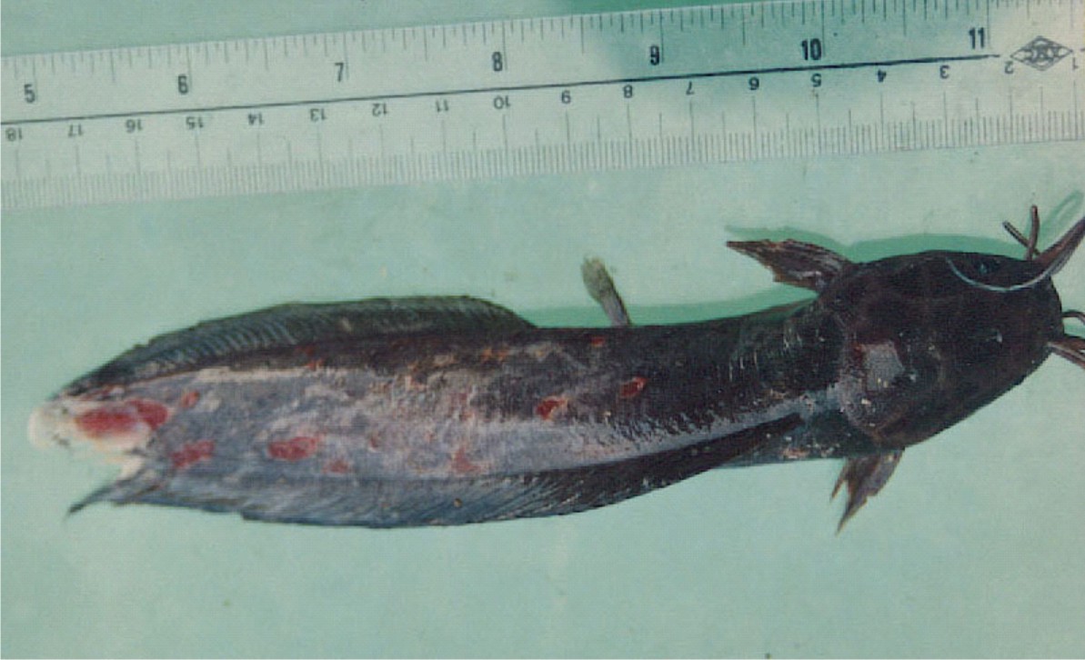 | Ikan yang mengalami borok akibat bakteri Aeromonas |